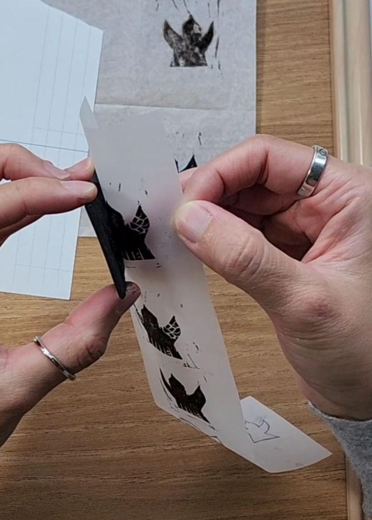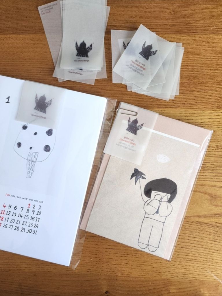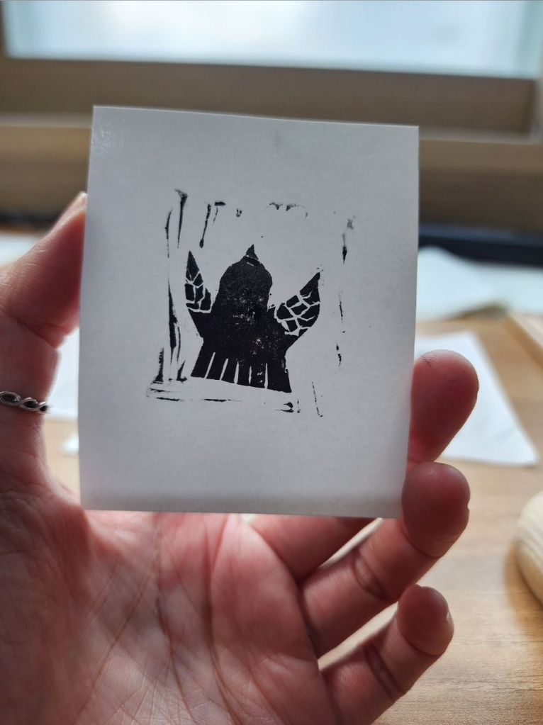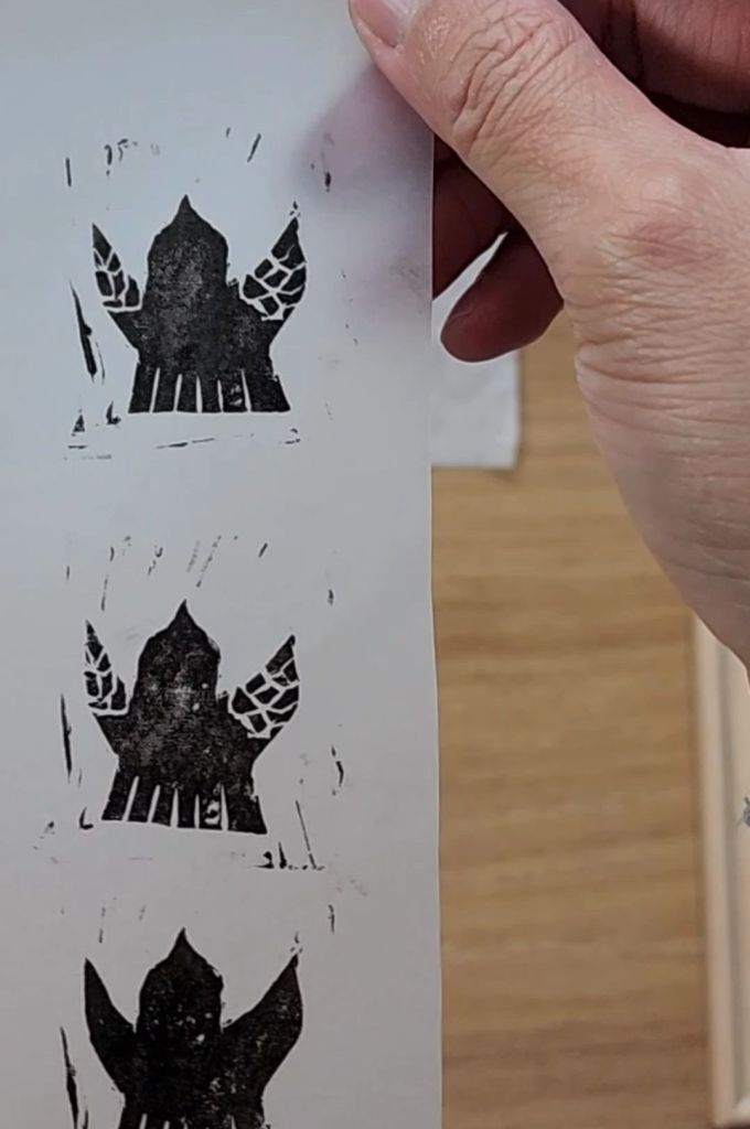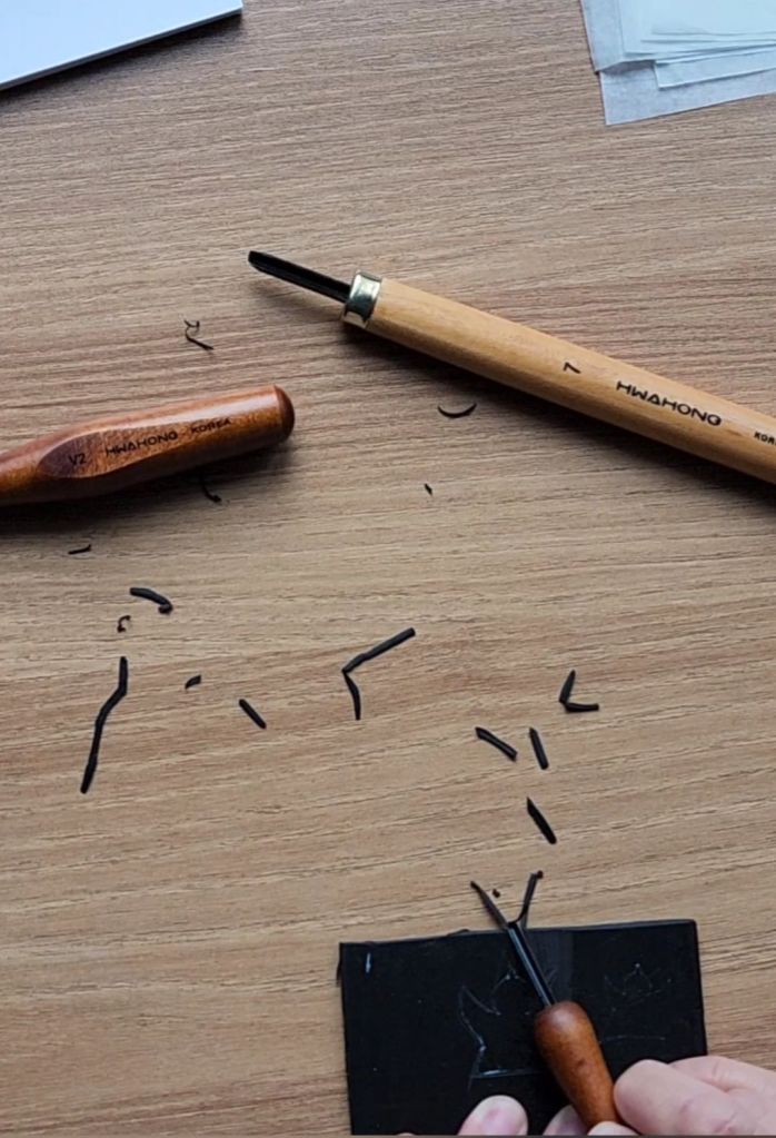 Since I had just bought some printmaking tools, I created an image using printmaking, edited it in Photoshop, and then made the labels.