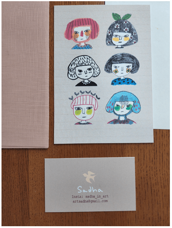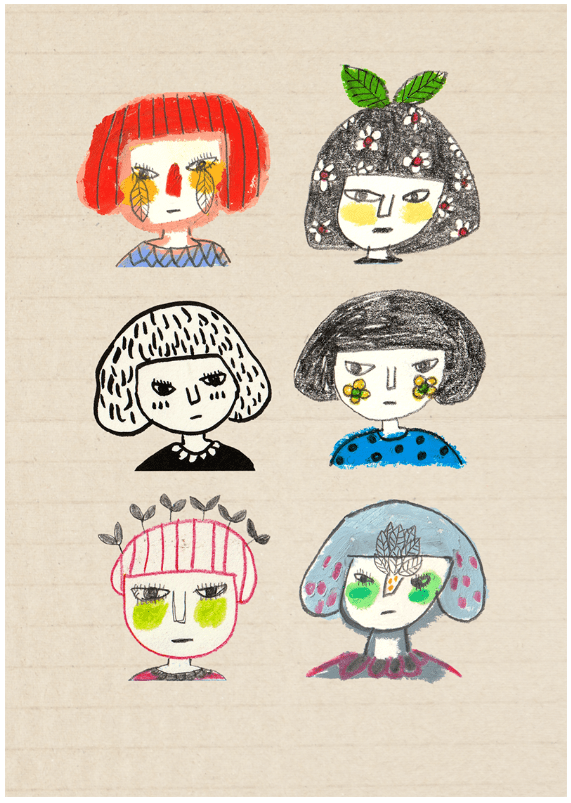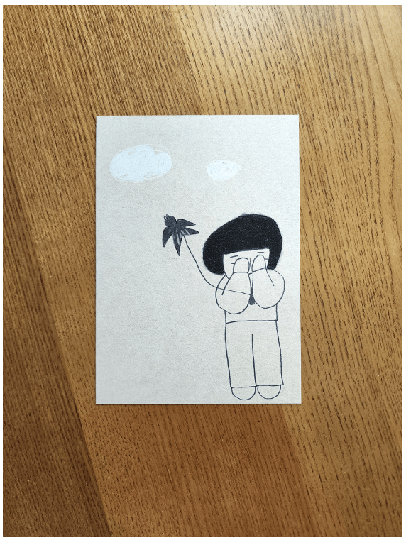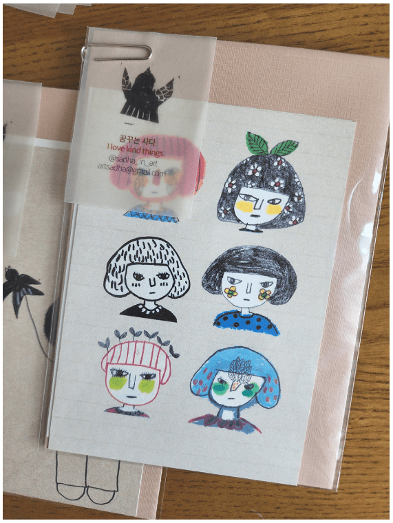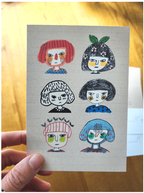 I also gathered only the face drawings from the pictures I drew for my drawing diary and made them into this postcard.